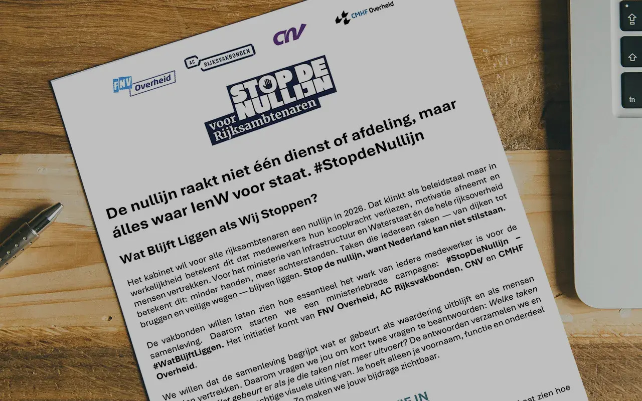 Het kabinet wil voor alle rijksambtenaren een nullijn in 2026.